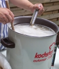Nun bekommt das zukünftige Bier als Gegengewicht zur Süße seine spezielle Note durch die Zugabe des Hopfens.